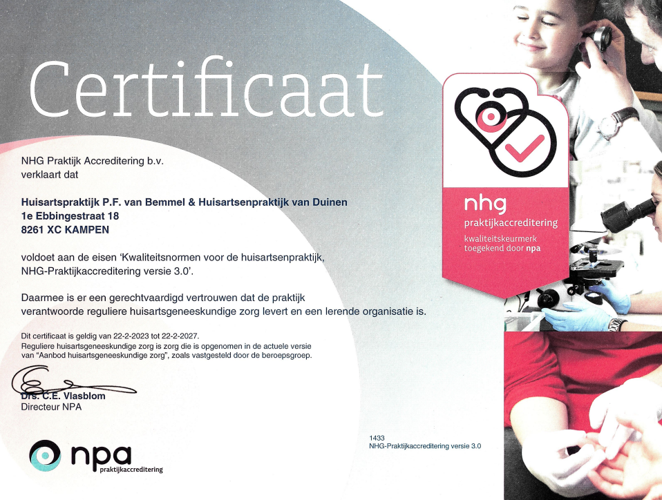 Praktijk Van Duinen werkt samen met Praktijk Van Bemmel voortdurend aan kwaliteit.